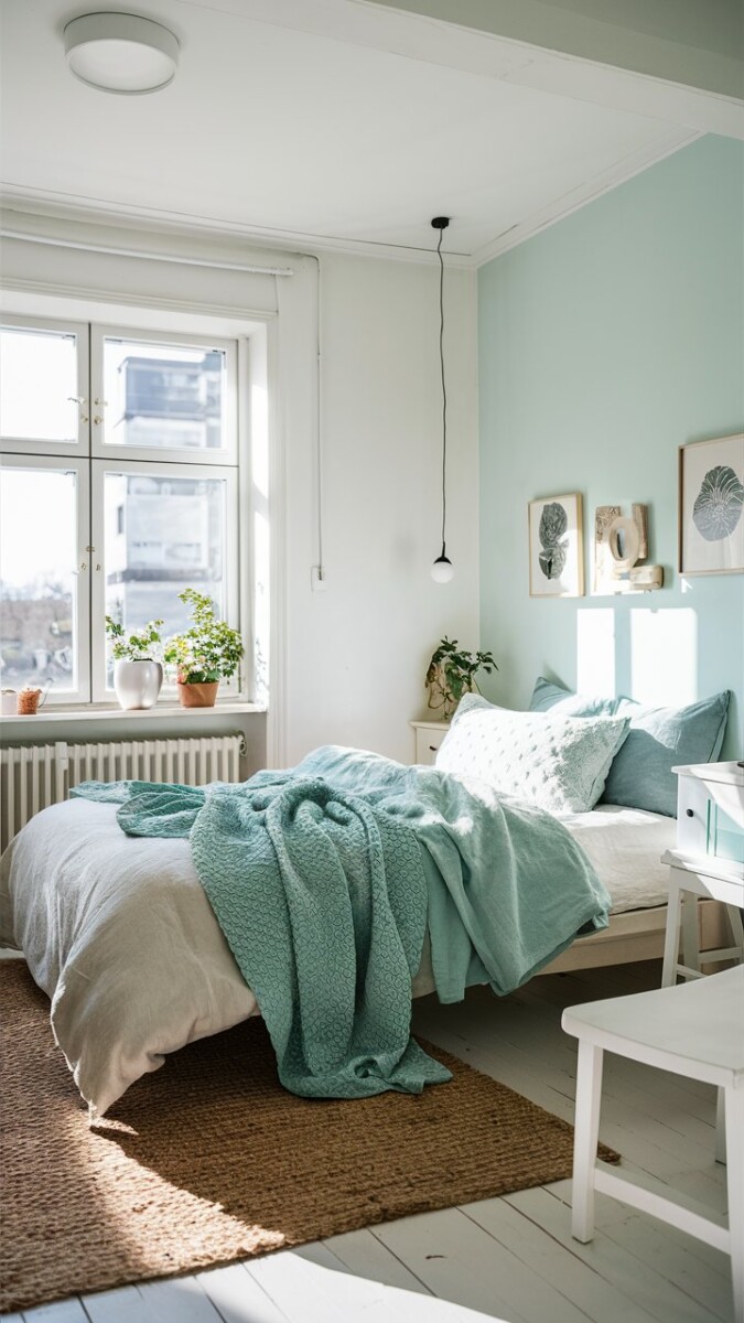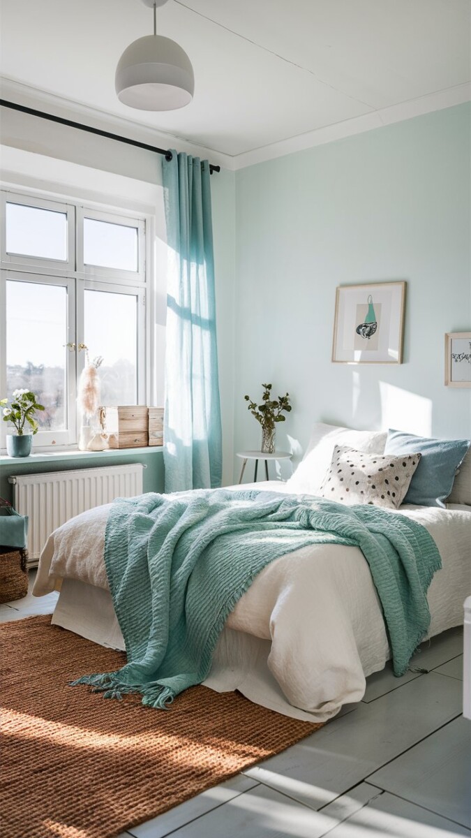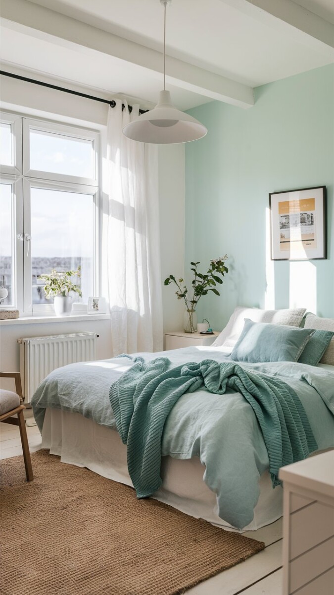 Light tones reflect light and instantly make a room feel more spacious and airy. Think whites, soft greys, pastels, and beiges for walls and bedding. If you love bold colours, incorporate them in accents like pillows, rugs, or artwork instead of dominating the palette.