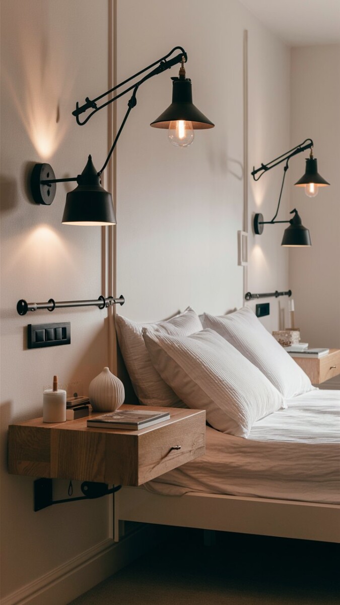 Say goodbye to bulky bedside lamps. Wall-mounted sconces or pendant lights free up precious surface area on your nightstands. Plus, they add an element of style and sophistication.