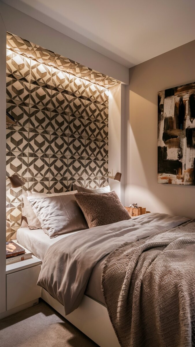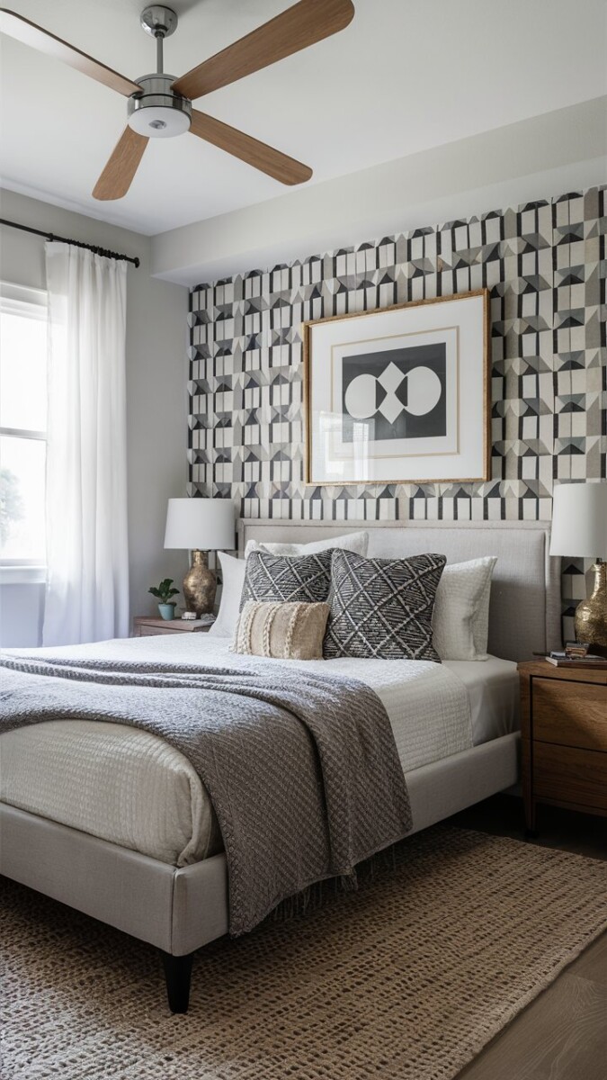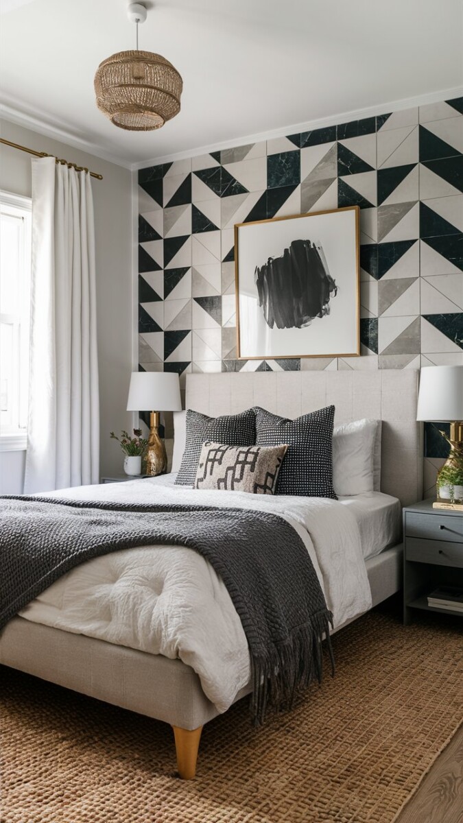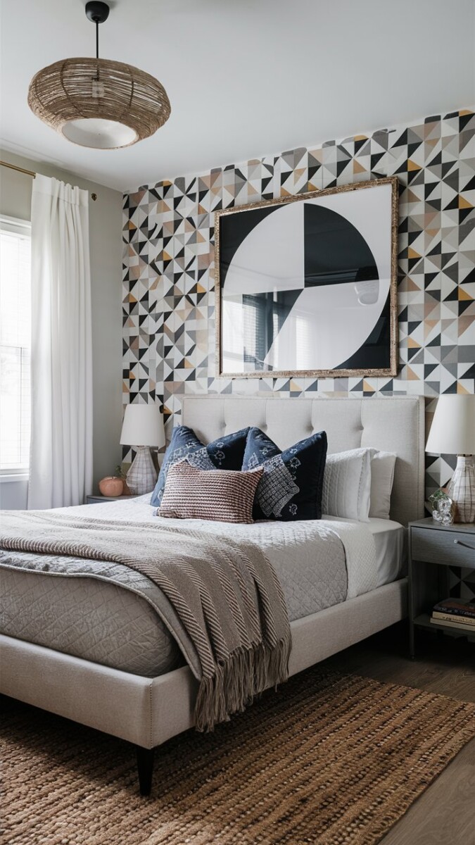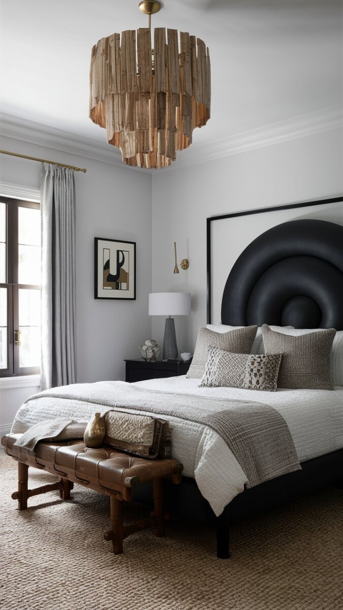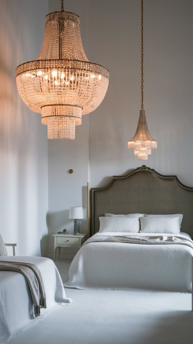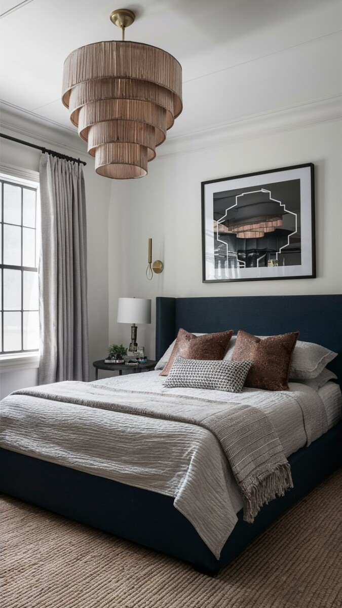 Instead of filling your room with lots of small accessories, opt for one or two statement pieces. A beautiful light fixture, a large piece of art, or a bold headboard can anchor the room and make it feel intentionally designed — not cluttered.