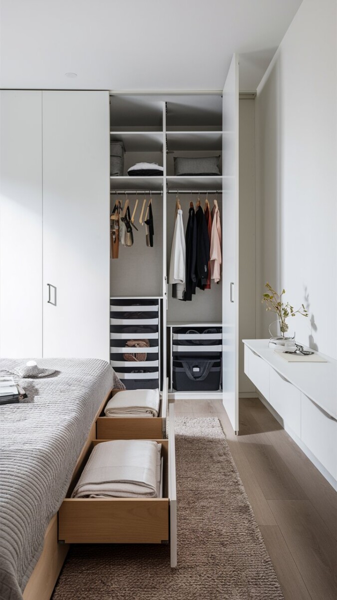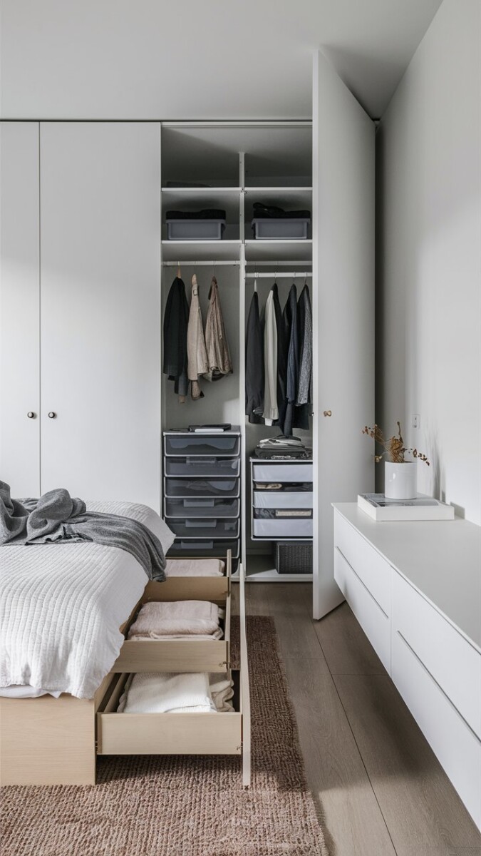 Clutter makes small spaces feel even smaller. Embrace minimalism by carefully curating what stays in your room. Use under-bed storage, storage baskets, drawer dividers, and hidden compartments to keep everything in order.