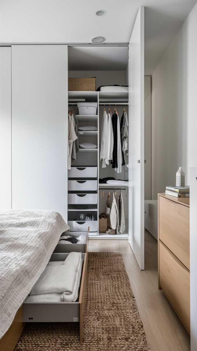 Pro Tip: Use tall wardrobes that go up to the ceiling — the top shelves can be used for seasonal items or rarely-used linens.